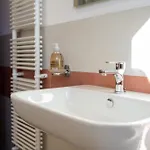 Bathroom facilities also include a shower. There are hairdryers and bath sheets for guests' comfort.